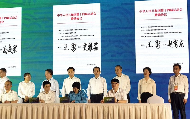 金陵體育作為全國第十四屆運(yùn)動(dòng)會(huì)的贊助企業(yè)和供應(yīng)商,受邀參加本次簽約儀式。
